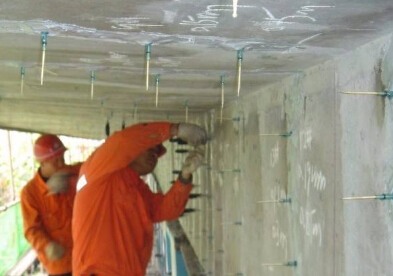 当防水堵漏注浆后,裂缝不会再产生漏水情况,但是结构的强度没有得到提高,采用抗压密封剂加上各种添加剂、活性剂、助剂制成一种高强度、低粘度的结构加固材料,当该材料固化及到令期后可产生大于C30的结构强度,使上下混凝土板连成一个整体,达到长期整体工作的目的。